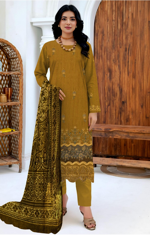 RAJWAN | 3PC EMB CHAMKI DORIA DHANAK WITH PLACHI SHAWL